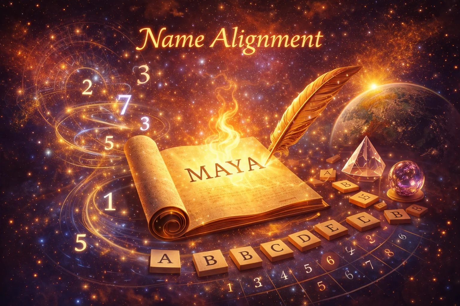 The letters in your name add up to a number that quietly shapes how you think, speak and draw events toward you. Name Alignment is a Vedic-numerology method that tunes the total of your name so it no longer fights the pattern shown in your birth chart plus by the planets that rule it. When the name and the chart say the same thing, life meets less friction but also more help.